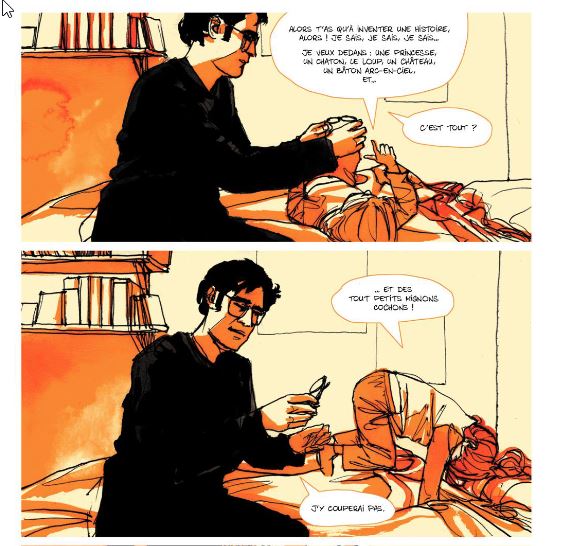 Les deux auteurs ont deux fillettes qui ont presque le même âge. Laurent Bonneau a pris la sienne comme modèle et rend dans son style hyperréaliste, avec une étonnante justesse, toutes les mimiques d’une petite fille dynamique tandis que Damien Marie a su retranscrire sans la moindre mièvrerie expressions et syntaxe enfantine. On ressent énormément la tendresse émanant de ces regards de père comme dans l’opus précédent et dans l’œuvre autobiographique de Laurent Bonneau.