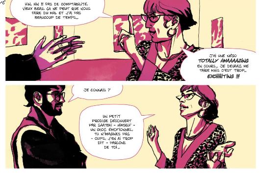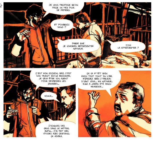 Le choix des couleurs crée également des correspondances avec d’autres moments heureux : il y a d’abord les scènes passées avec le couple d’amis indéfectible, Isa et Alex, autour de bières artisanales (apparemment le scénariste est un zythologue émérite !) mais aussi celles mettant en scène Nathalie la jeune artiste autiste et son père à la tendresse bourrue ou les bénévoles de l’armée du salut qui offrent bien plus qu’un café, une écoute…. L’album grâce à l’antithèse souligne « l’essentiel » dont parlait naguère le dessinateur dans un autre de ses ouvrages autobiographiques : les liens humains qui servent d’antidote à la désespérance ainsi que l’Art.