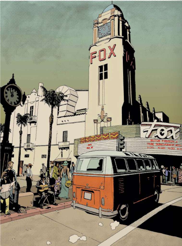 Il dessine en traditionnel et utilise ensuite le numérique pour y inclure trames et couleurs. Le côté vintage rappelant l’illustration américaine de l’époque, les trames à la Lichtenstein très sixties contribuent à nous replonger dans ces années-là. Pour la réalisation des décors, il s’est appuyé sur des photos ou, pour le festival d’Altamont, des captures d’écrans du documentaire Gimme shelter qui retrace la tournée américaine des Rolling Stones en novembre et décembre 1969 dont le festival d’Altamont est l’élément central.