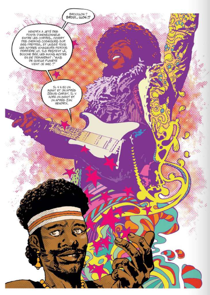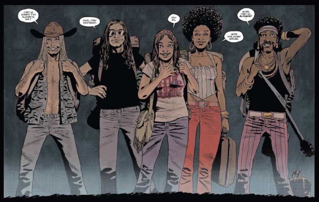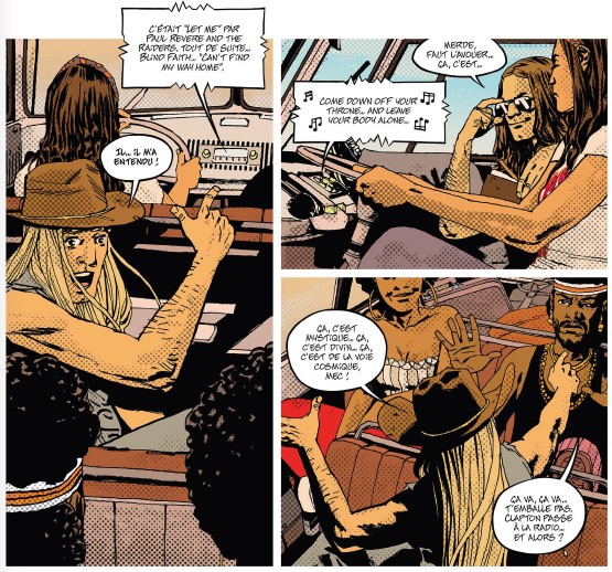 Au gré des morceaux qui passent à la radio, les discussions vont bon train, chacun défendant son idole. Les rocks stars présentes dans l’album, que ce soit Hendrix ou Clapton, sont en lien avec la personnalité de nos cinq protagonistes, représentants d’un microcosme caractérisant les différentes facettes de de la génération hippie.