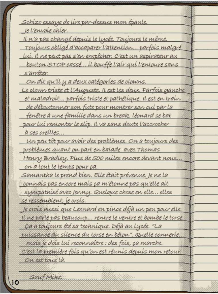 Nous découvrons que quatre d’entre eux, Leonard (Leo), Matt (Doc), Jennny (Jen), la copine de Matt et Thomas (Schizo), tous originaires de Bakersfield sont des copains d’enfance alors que Samantha (Sam) est une amie de fac de Jenny qui s’est jointe à la petite bande pour l’occasion. Un absent, Mike ….