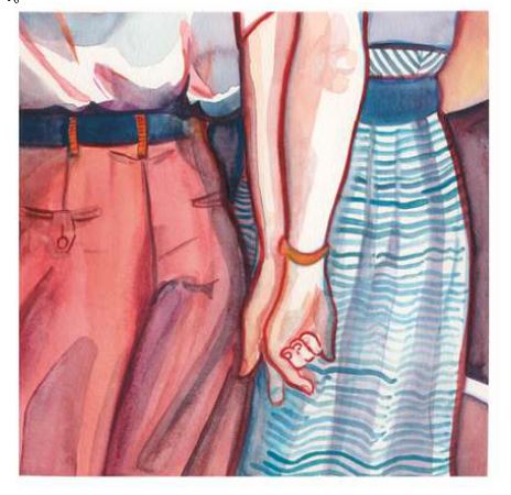 Si la photographe est principalement connue pour ses clichés noir et blanc, Paulina Spuchess choisit là encore de s’éloigner de la doxa et utilise des couleurs franches proches du fauvisme dans un dessin lumineux à la gouache et à l’aquarelle jeté et dansant.