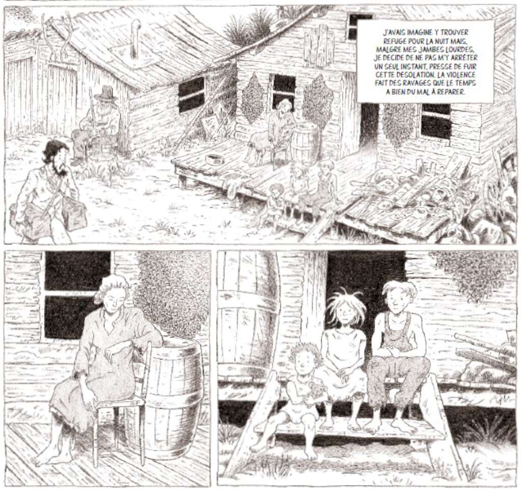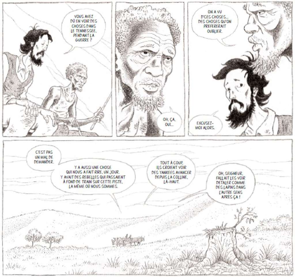 Ce voyage se déroule deux ans après la fin de la guerre civile et c’est à travers ses yeux que l’on va découvrir ces états du Sud dévastés dont on peut voir les stigmates dans les paysages traversés mais aussi dans les répercussions sur la population : misère, sort des esclaves affranchis sans oublier la dangerosité des anciens soldats sudistes qui rôdent désœuvrés…