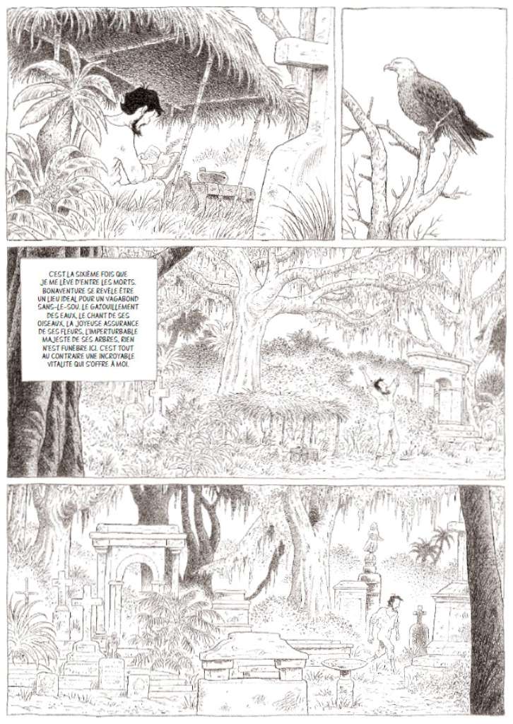 Outre la maestria graphique, Lomig fait preuve d’une belle maîtrise de la narration, narration non linéaire entrecoupée de flashbacks et rythmée par les rencontres.
