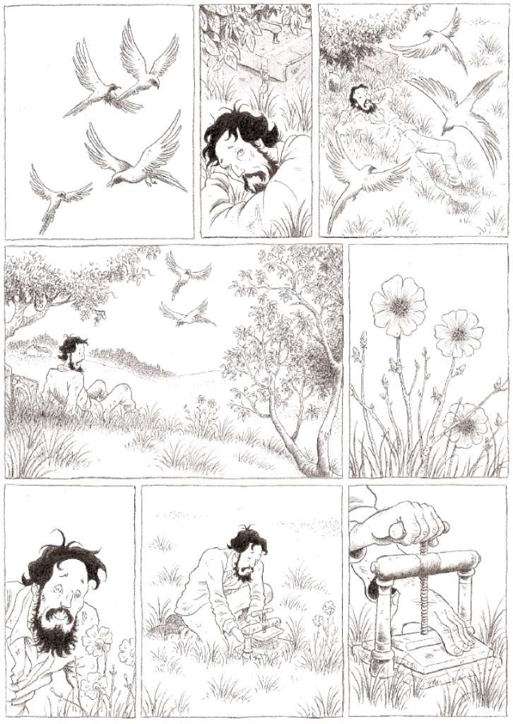 Le dessinateur rennais s’est nourri de cette incursion dans l’univers de John Muir et a su retranscrire graphiquement l’émerveillement du clochard sylvestre comme le sien propre.