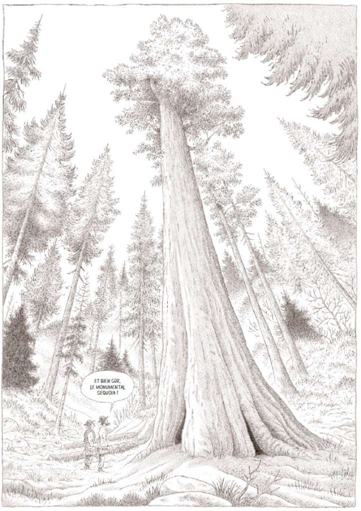 Quand vous avez créé Dans la forêt, vous n’étiez jamais allé là-bas donc les arbres, les séquoias, vous les avez dessinés de mémoire, d’après photo, avec votre style bien reconnaissable mais cette fois-ci, vous êtes allé sur place.