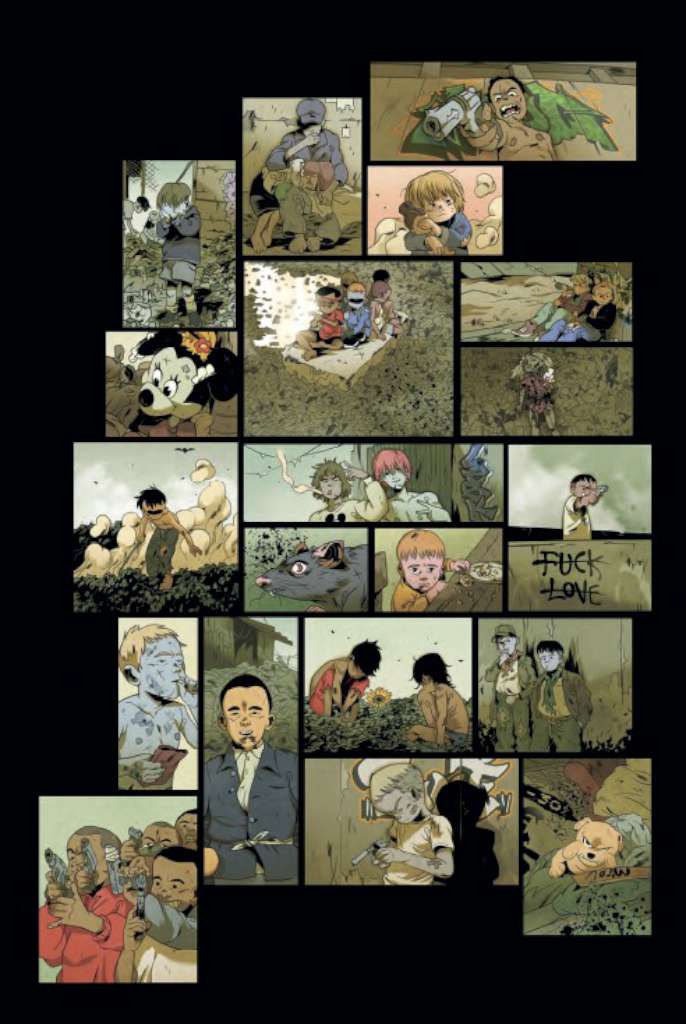 Alors, l’univers de Slum Kids, comme son nom l’indique, c’est une décharge à ciel ouvert. Où ? On n’en sait rien. Quand se passe l’histoire ? On ne le sait pas non plus. Un univers ultra-violent où il n’est pas question de vie mais de survie. Qu’est-ce qui a inspiré cet univers ?