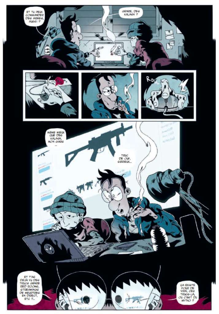 Il y a des thématiques vraiment dures à aborder dans Slim kids mais il faut que j’aille au bout de la logique. Je ne pouvais pas ne pas mettre une scène comme ça dans cet univers-là alors que je parle de tout le reste, de drogue et tout … J’essaie juste avec cet univers vraiment sombre de faire ressortir justement comme tu disais l’humanité dans ces petits gamins-là et le fait qu’ils sont vraiment imprégnés de leur environnement et que c’est ça qui les fait se comporter comme ça mais on se rend compte à plein de moments qu’ils ont des failles parce que c’est des enfants.