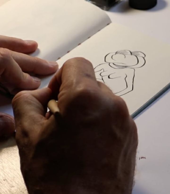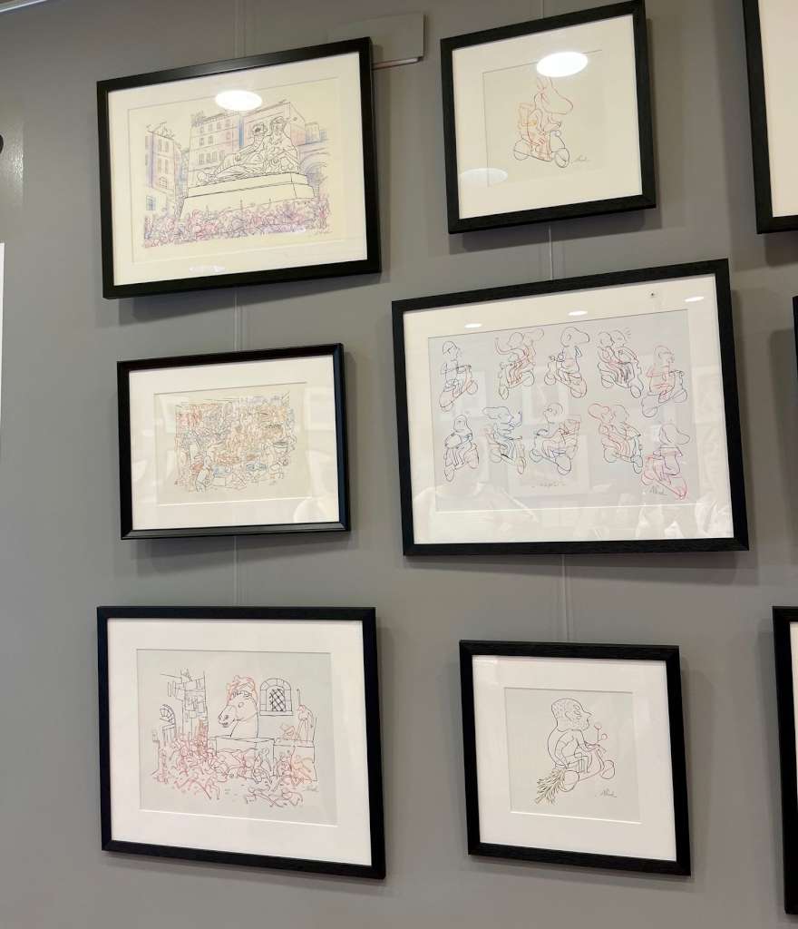 C’est vrai que j’ai tendance à peu vouloir exposer, à peu vouloir vendre mes dessins mais après la question, je ne me la posais même pas : on se l’était promis. Le plus difficile ça a été de choisir de faire une sélection de dessins parce que ce des dessins comme j’en fais tous les jours et plusieurs par jour depuis 30 ans, il y en avait des milliers parmi lesquels il fallait que je choisisse !