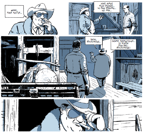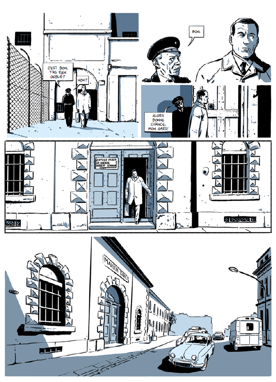 Deux différences toutefois. Pour une raison de lisibilité, le roman graphique s’ouvre sur Laurent sortant de prison, scène qui n’apparaît pas dans le roman.