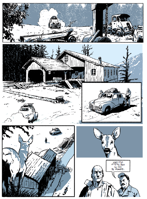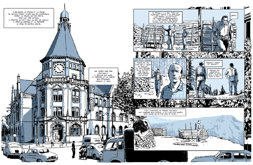 Le cadre des Hautes-Vosges cher à Stéphane Godefroid qui signe la postface est un personnage à part entière du récit. En témoignent les planches pleine page de paysages qui apportent une respiration au récit. Alors outre la tension du polar et du drame psychologique qui se trame, on retrouve les codes du western : la nature, le danger permanent, les rivalités entre bûcherons, entre propriétaires, les rapports tendus entres les différents protagonistes, les grands espaces de l’ouest américain ayant cédé la place au terroir vosgien.