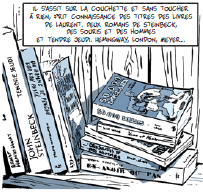 «Il [Hector] s’assit sur la couchette et, sans y toucher, il prit connaissance des titres de livres de Laurent.