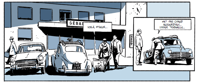 Votre écriture graphique réaliste ancre vraiment le récit dans la réalité pour les lieux d’abord mais également l’époque. J’ai pris vraiment plaisir à retrouver les voitures de mon enfance : la dauphine de la mère d’une de mes amies, la 4CV de mon oncle … Ce soin apporté au détail pas seulement des personnages mais des lieux, des voitures, ça nous fait enter dans la réalité de l’époque