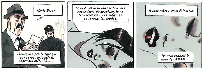 Le roman graphique est très fidèle au roman avec ses récitatifs et dialogues bien choisis si l’on excepte toutefois l’épisode de Montparnasse qui ouvre la bd alors qu’il n’arrive sous forme de flashback qu’au milieu du récit.