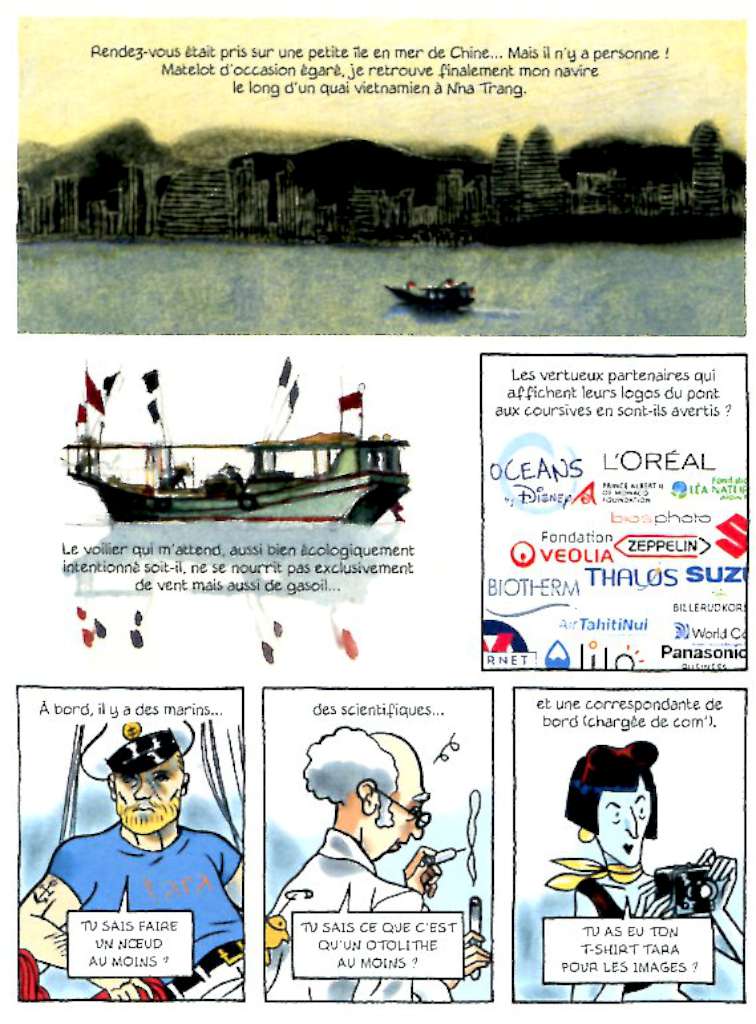 Le choix de ce grand spécialiste des récits maritimes coulait de source. Pour rappel, son baptême de la mer, c’est à Bernard Giraudeau qu’il le doit lorsqu’il a embarqué avec lui sur le Marie-Jeanne. Cela a donné naissance à deux albums R97 : Les hommes à terre paru en 2008 chez Casterman et réédité en 2020 dans la collection Aire libre aux éditions Dupuis puis Embarqué paru en 2015 chez Futuropolis.