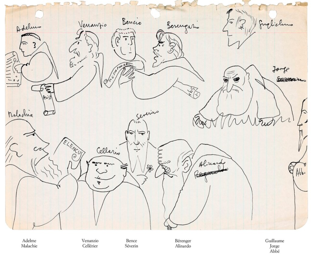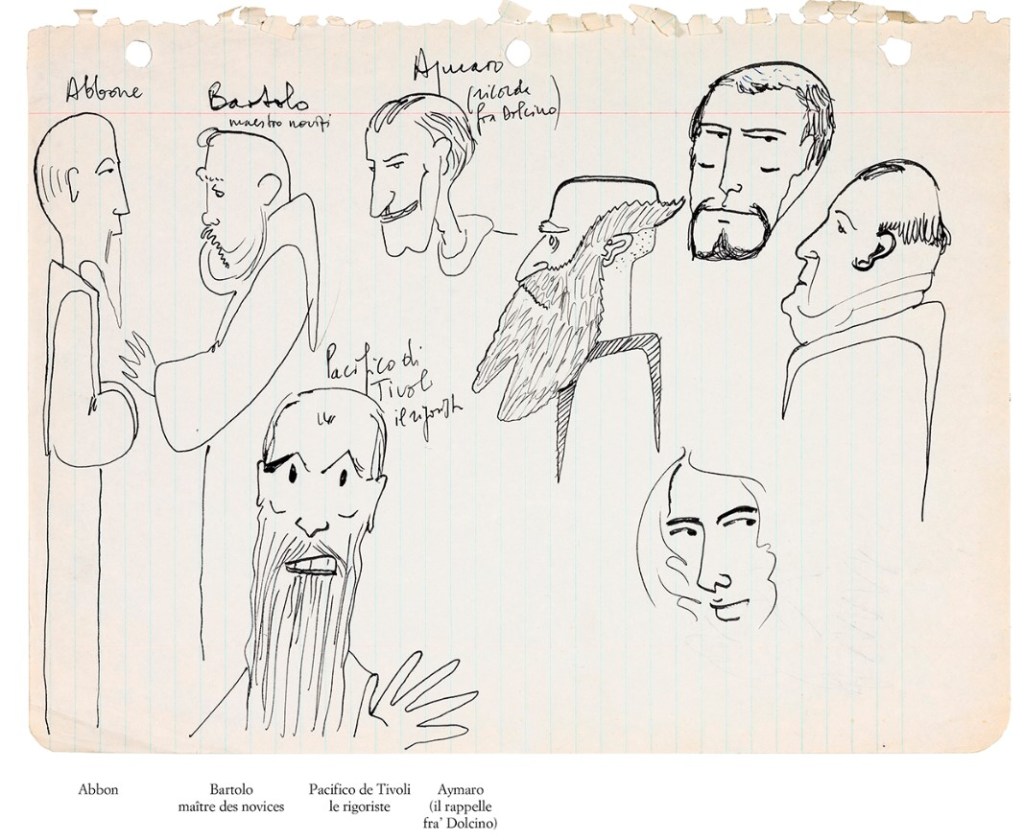 Le dessinateur indique s’être inspiré pour les lieux et personnages des dessins, croquis et notes préparatoires d’Umberto Eco que l’on peut retrouver dans l’apostille publiée en 1983 qui nous éclaire sur la genèse du roman.