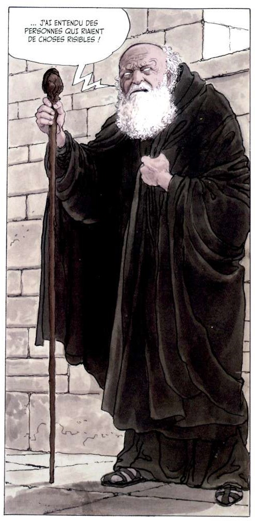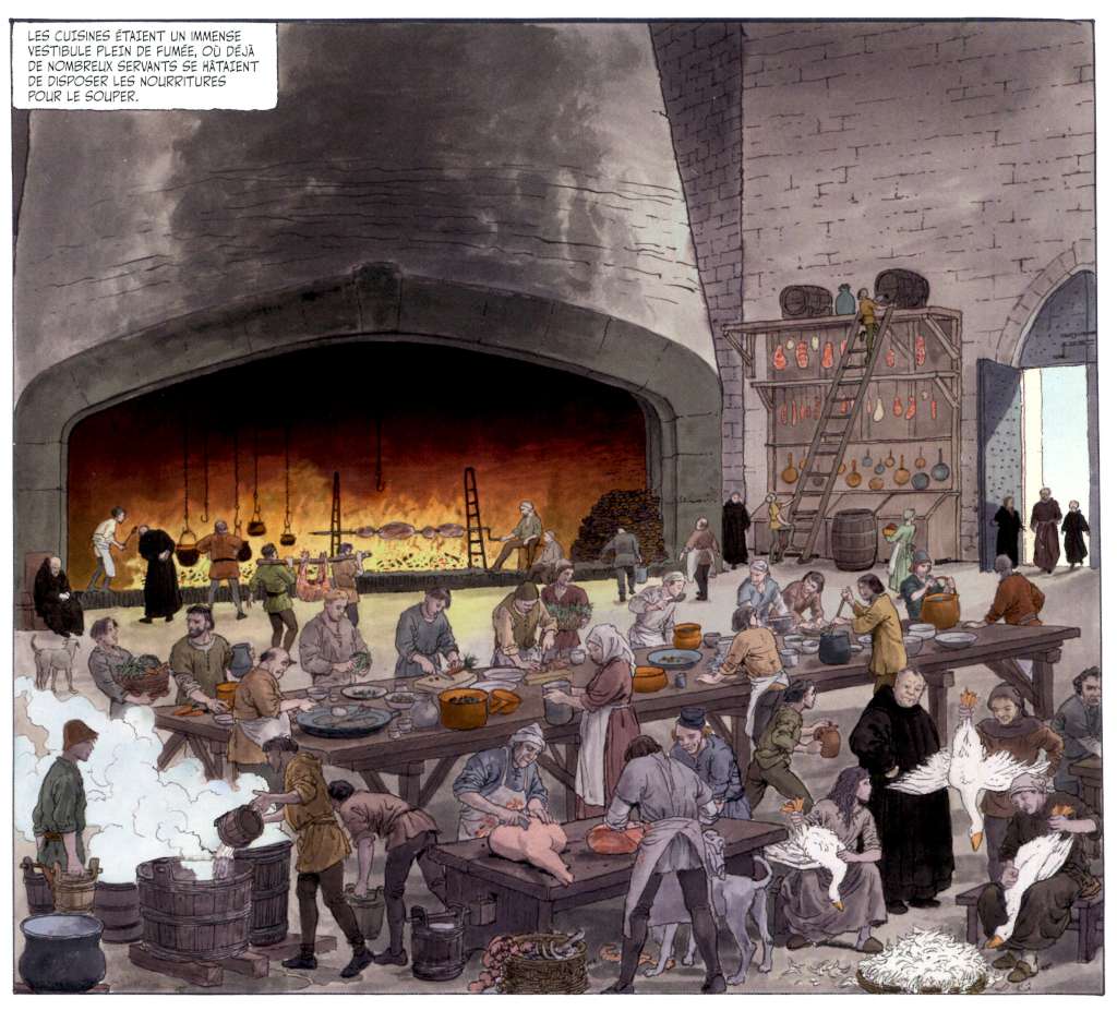 Le narrateur, c’est Adso. Mais quel Adso ? Le jeune Adso au moment où il vit les évènements ou le vieil Adso qui les couche par écrit au crépuscule de sa vie ? Un peu les deux sans doute, le miroir déformant de la mémoire ayant entre temps fait son œuvre, ce que Milo Manara, traduira graphiquement à travers l’exagération des dimensions des lieux notamment celles de la cheminée. Tout ne parait-il pas plus grand dans nos souvenirs d’enfant ou de jeunesse?