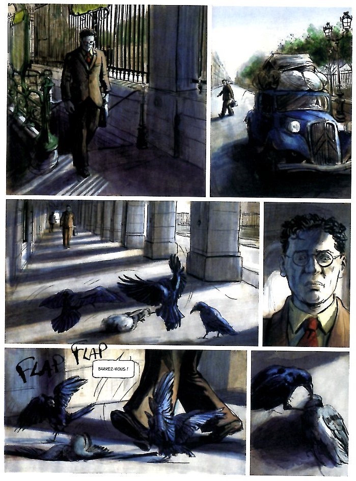 Cela donnera lieu a une très belle scène quasi muette où des corbeaux s’acharnant sur un pigeon laissent entrevoir à Désiré que le vent est en train de tourner et qu’un danger le menace.