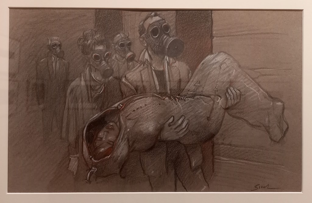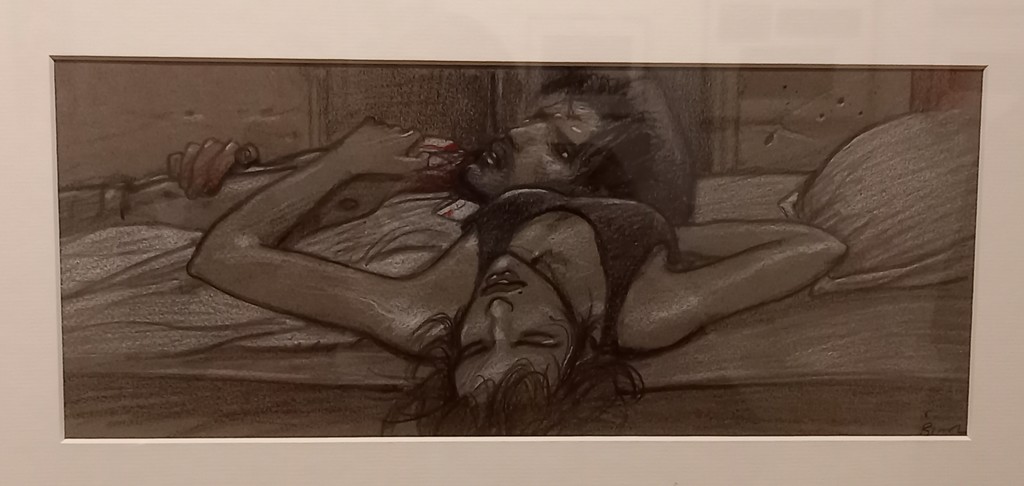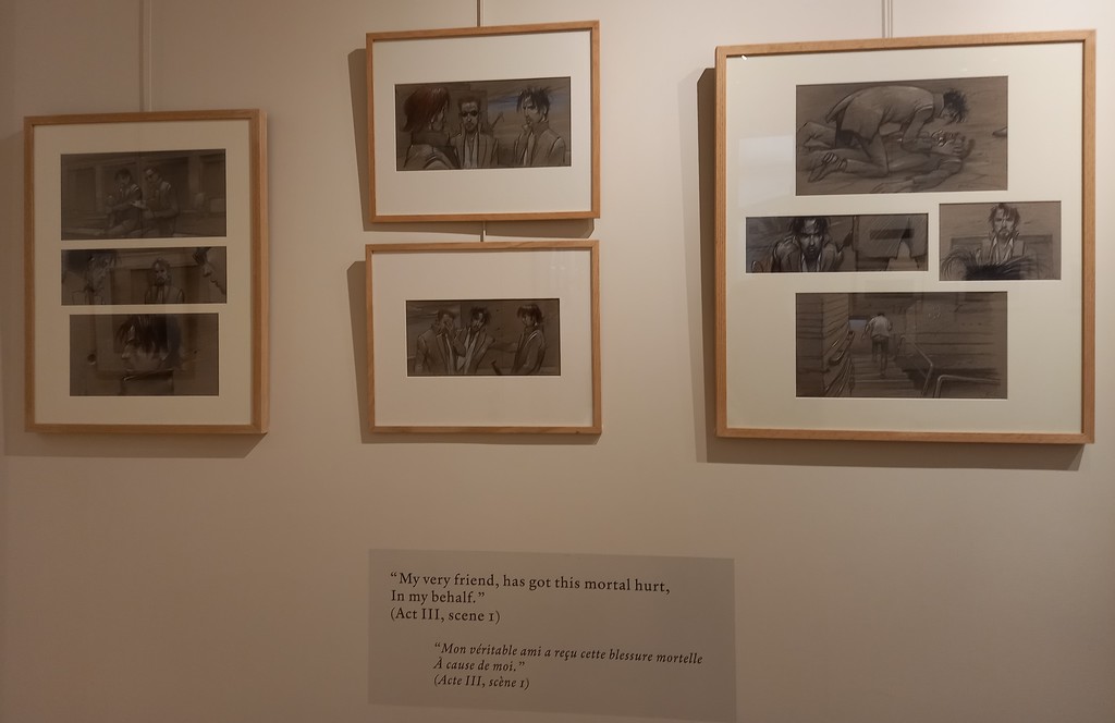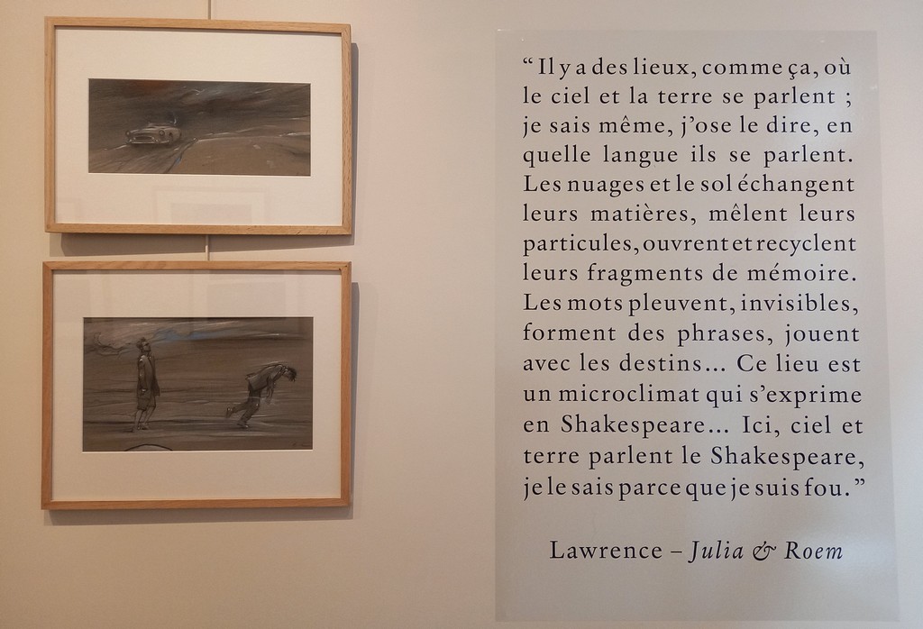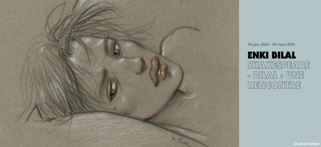 En liaison avec l’ouvrage Shakespeare-Bilal : Une rencontre édité par Marie Barbier Éditions en novembre 2023, la galerie expose des dessins originaux de Julia et Roem, deuxième tome de la trilogie Coup de Sang, non pas une adaptation mais plutôt une mise en abyme du mythe universel de Roméo et Juliette.