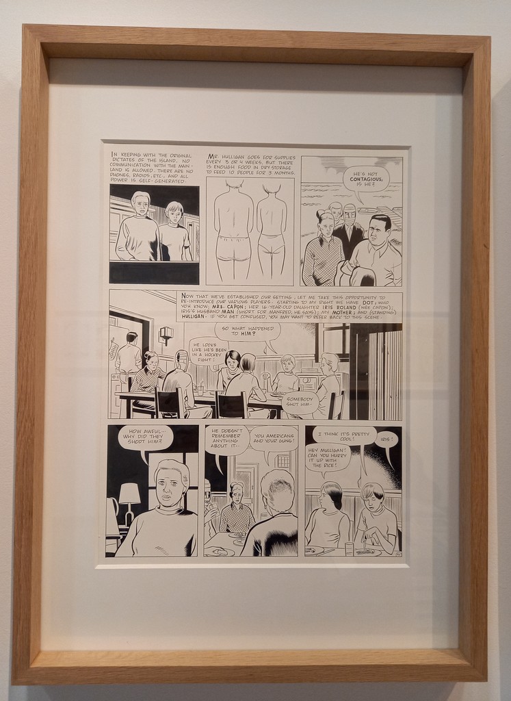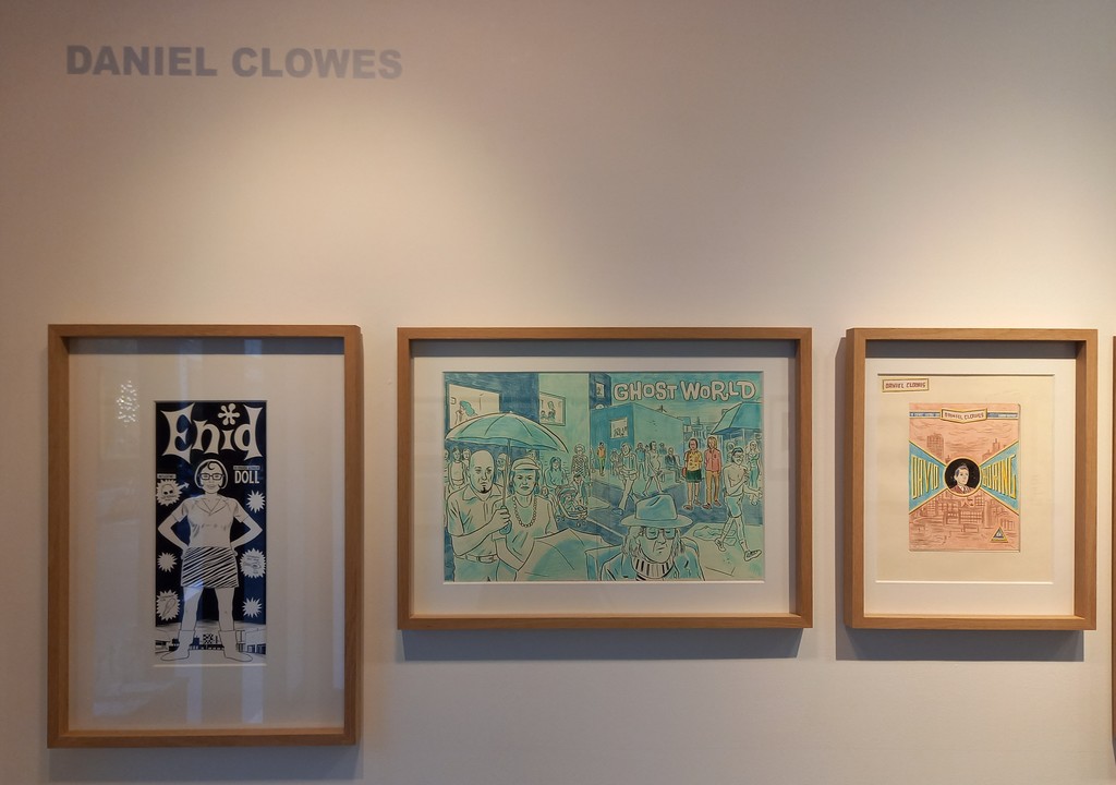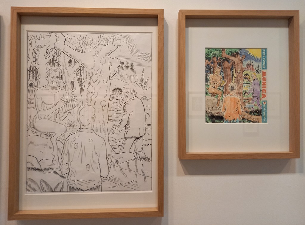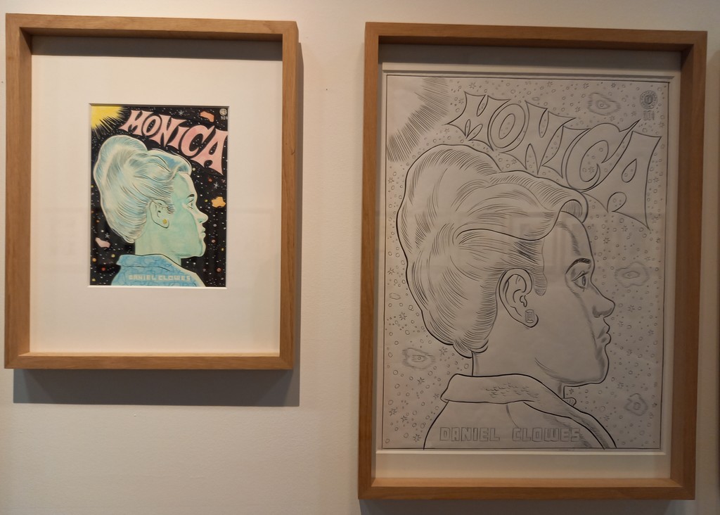 Sont exposées des couvertures et planches de Monica bien sûr mais également de ses albums précédents Ghost World, Comme un gant de velours pris dans la fonte, David Boring, Patience prépubliés sous forme d’épisodes dans son magazine Eightball, ainsi que des travaux pour le New Yorker et autres portraits.