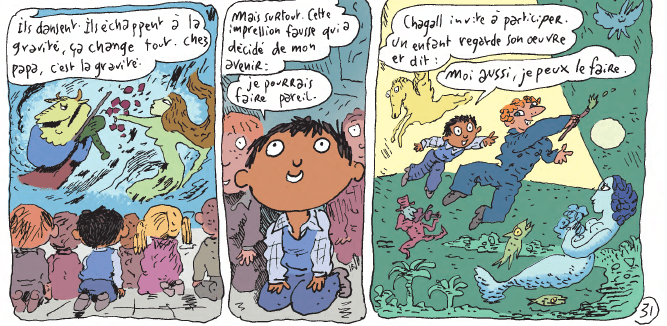 L’autre découverte déterminante sera celle de l’œuvre de Chagall au musée de Nice vers l’âge de sept ans qui le désinhibera quant à la technique.