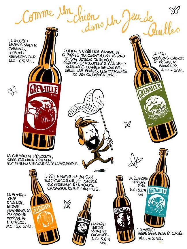 La brasserie Grenaille : bel endroit pour une rencontre, celle d’un brasseur de conviction qui plutôt que l’argent préfère brasser le houblon et d’un dessinateur qui a fait sienne le mantra d’un garçon boucher et « veut recevoir l’exrême onction à grand coup de malt et de houblon« . Prosit !
