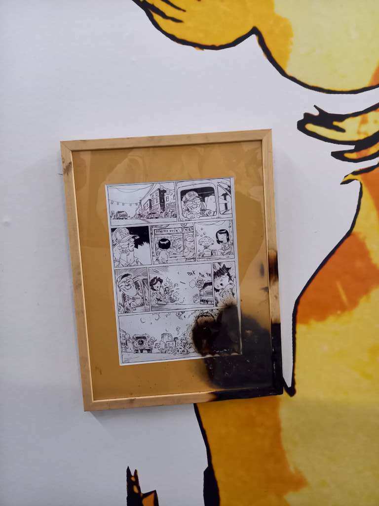 Cette explosition porte bien son nom : planches brûlées au lance-flamme, trouées par des impacts de balles ou explosées par le poing du Tigre de Loba Loca. Qu’on se rassure, il s’agit là de reproductions, bien sûr!