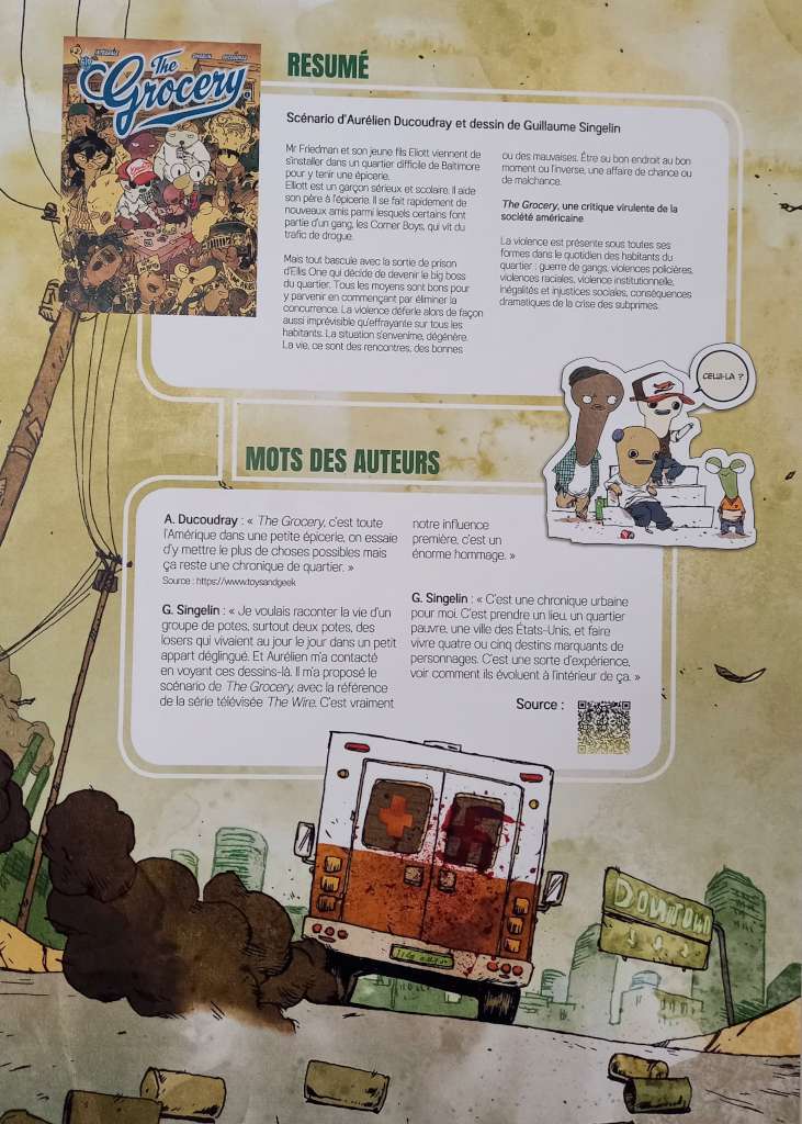 À découvrir aux RDV BD Amiens l’exposition L’Explosition, une rétrospective regroupant une centaine de planches originales, exposition non exhaustive mais immersive dans les univers de The Grocery, P.T.S.D, Loba Loca et Frontier, les quatre œuvres phares de l’invité d’honneur également signataire de la superbe affiche : Guillaume Singelin.