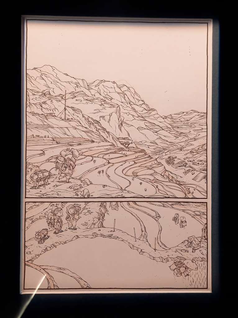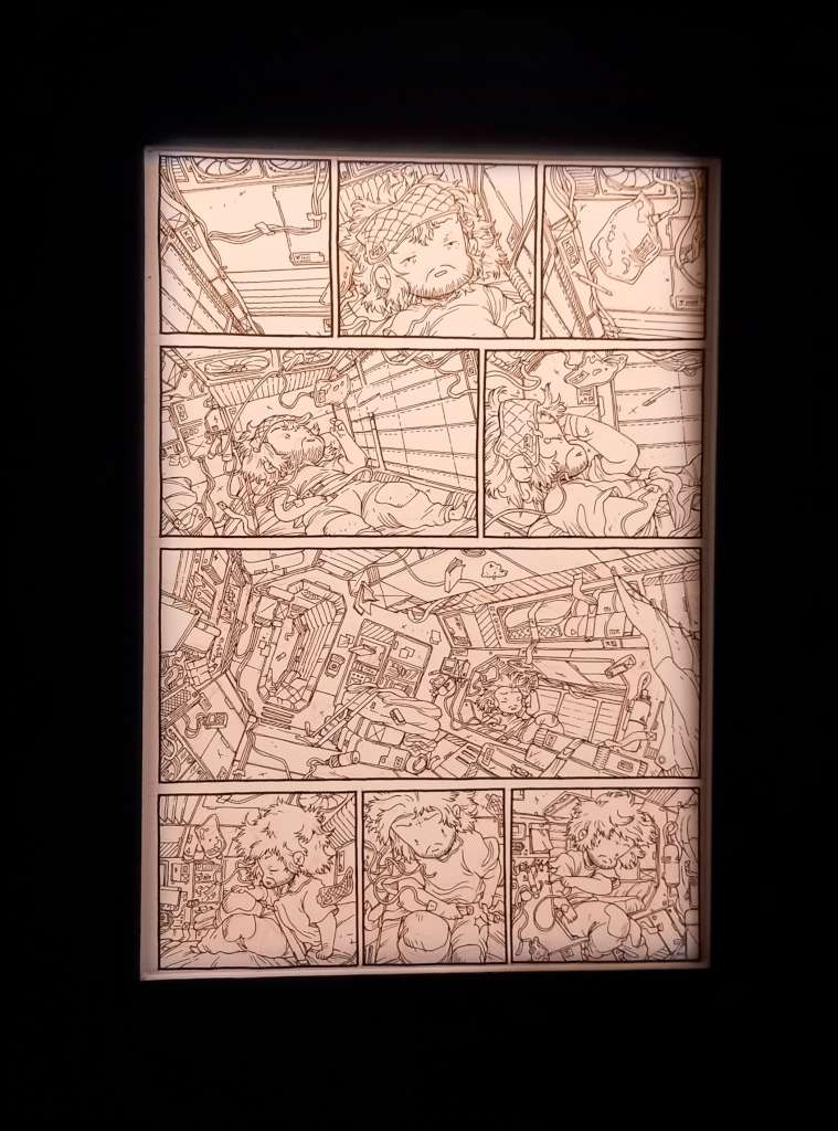 On ne présente plus Frontier cet album de SF unanimement salué par le public et la critique. Multiprimé en 2023 avec notamment le Prix Landerneau BD, le Prix coup de cœur de Quai des bulles à Saint-Malo, le BDGest’Art du meilleur récit court et en 2024 L’éco-fauve à Angoulême, le Prix Imaginales de la bande dessinée des bibliothécaires à Épinal, il est actuellement en lice pour le prix France bleu/Actuabd qui sera remis à … Amiens lors du dernier weekend des Rendez-vous de la BD d’Amiens. Ce serait une belle conclusion à son étape amiénoise.