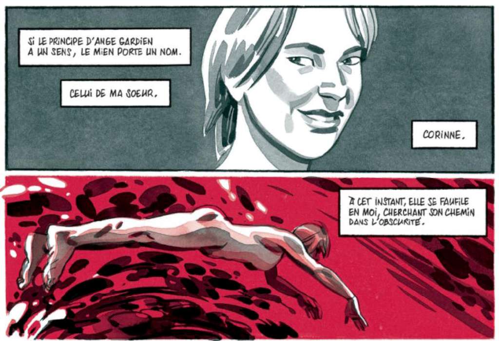 Ensuite, il met en scène une symbolique de la couleur. Il choisit le noir et blanc pour transcrire l’isolement physique et mental mais aussi pour ne pas distraire le lecteur afin que ce dernier reste concentré sur l’essentiel : son histoire. Il ajoute cependant une couleur, le rouge, pour dire son intériorité, signifier les changements et rappeler le sang avant de passer dans les dernières pages à des couleurs directes franches et douces pour incarner la vie retrouvée.