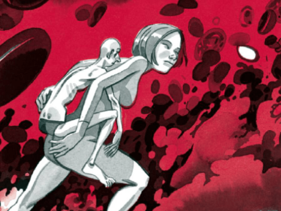 Pendant de longs mois, l’auteur a été un « patient » dans tous les sens du terme : il a souffert, il a été pris en charge, il a dû attendre. Il nous fait ressentir toutes ces émotions. Alors que le traitement contre le cancer est itératif, routinier et ne semble pas a priori un bon matériel scénaristique, il nous le présente un peu comme un thriller : même si l’on connaît l’issue puisqu’il est là pour nous raconter son histoire, on tremble avec lui devant les rebondissements médicaux et on attend avec lui que la greffe prenne, que son sang se régénère, qu’il ait un « sang neuf » . Nulle volonté de faire un ouvrage scientifique, simplement la décision de rapporter son expérience : tous les bouleversements que crée cette maladie et les montagnes russes tant psychiques que physiques qu’il a subies.