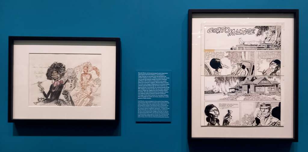 Au deuxième étage, La bpi (Bibliothèque publique d’information) accueille l’exposition « Corto Maltese, une vie romanesque » entièrement consacrée au mythique gentilhomme de fortune créé par Hugo Pratt, qui s’interroge à travers ce héros iconique sur la place du personnage dans la bande dessinée. À l’aide d’une sélection de documents originaux (planches, aquarelles, storyboard, croquis…), elle va nous faire explorer les rivages littéraires de l’œuvre de l’auteur à travers les références, citations, évocations de livres ou rencontres d’écrivains qui émaillent le récit des aventures de Corto.