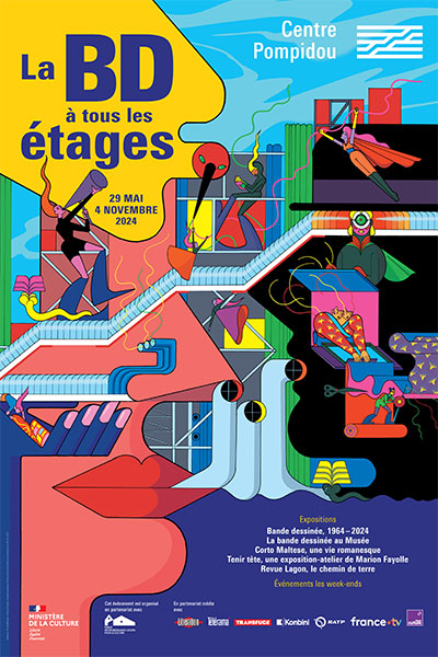 Le 9ème art a envahi le Centre Pompidou ! Depuis le 29 mai et jusqu’au 4 novembre, l’évènement La BD à tous les étages va se décliner en cinq grandes expositions occupant les différents espaces du Musée ainsi que six semaines de rencontres, performances, ateliers, projections, concerts dessinés…
