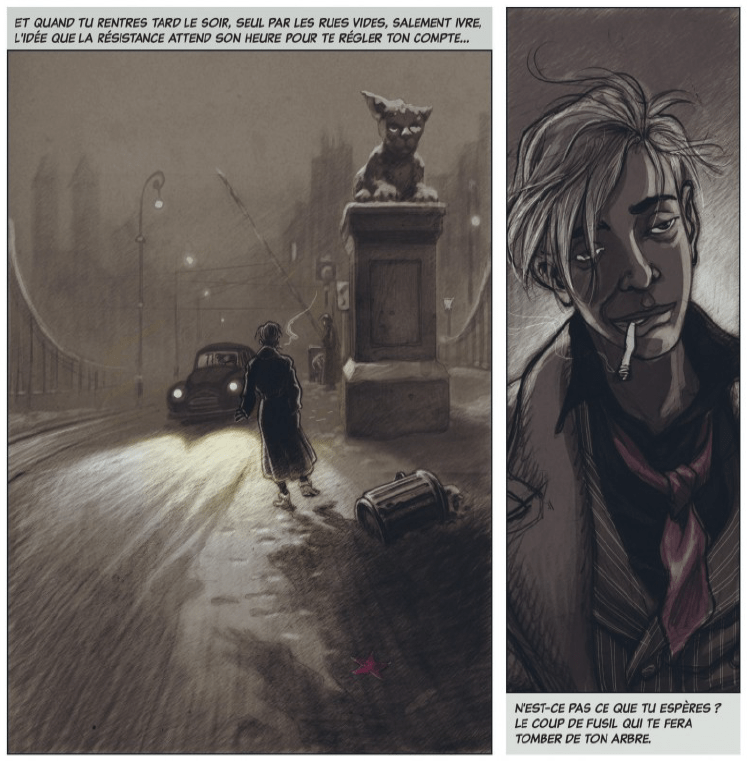 Après José-Louis Boquet et Christian Cailleaux pour Le passager du Polarlys, c’est au tour de Jean-Luc Fromental et Yslaire de s’attaquer à La neige était sale. Force est de constater qu’ils nous livrent là une adaptation absolument magistrale de ce roman existentialiste dans lequel on assiste à l’avilissement de Frank, jeune oisif à la gueule d’ange qui, faisant preuve d’une abjection sans borne, s’enfonce volontairement dans la spirale d’une dérive auto-destructrice dans une ville indéfinie où résonnent les bottes de l’occupant.