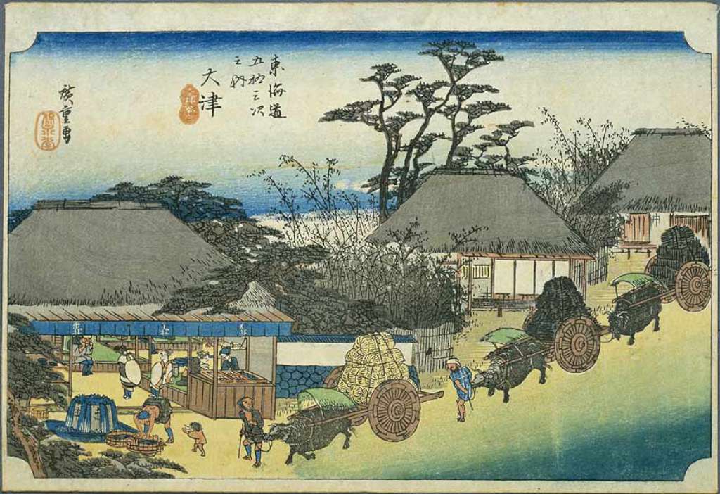 On pense bien sûr aux estampes d’Hiroshige telles Les « Cinquante-trois Stations de la route du Tōkaidō » ou à celles d’Hokusai comme « Trente-six vues du Mont Fuji » dans les pages consacrées au pittoresque Kyoto intemporel ou au mont Fuji.