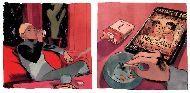 Des références cinématographiques également avec bien sûr celle évidente aux Enfants du paradis de Marcel Carné mais d’autres beaucoup plus discrètes comme cette illustration pleine page qui clôt l’épisode danois avec la superposition de 3 images : l’une de Liv, une autre, surexposée de Rachel et enfin une troisième composée de silhouettes noires qui fait irrémédiablement songer à la scène d’ouverture de Mulholland Drive, soulignant le côté lynchien du récit …