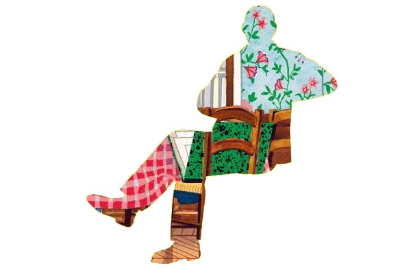 Avant même de pénétrer dans le récit, un arrêt s’impose sur la superbe couverture d’un jaune lumineux dans laquelle se découpe au sens propre comme au figuré la silhouette d’un homme assis, jambes croisées, nonchalamment accoudé sur une chaise nous permettant de découvrir, comme par le trou d’une serrure, l’intérieur de la maison : papier peint à fleurs, fenêtre, parquet, nappe à carreaux, 2 chaises. Sur ses genoux, un carton à dessins.