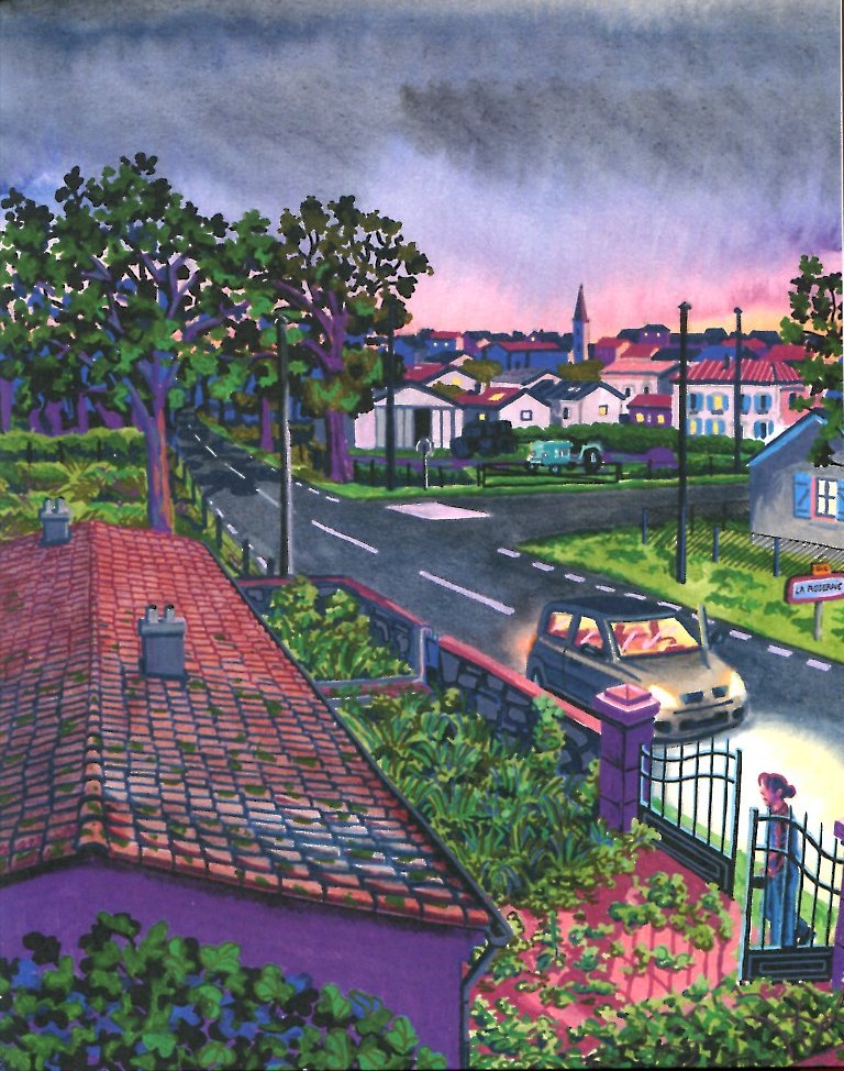 Ce troisième album est à nouveau centré sur un lieu mais ce n’est plus une ville ou un immeuble mais une petite maison à la campagne dans une zone périurbaine un peu sinistrée suite à la fermeture des carrières de Sainte-Chabelle dans les années 60-70, conférant ainsi en filigrane une dimension sociale au récit. Ne cherchez pas Sainte-Chabelle, ni La Roseraie, ce sont des lieux fictifs dont les abords – zone commerciale et déchetterie – ressemblent à ceux de n’importe quelle ville située dans n’importe quelle région. Cependant, la considération des indications routières – D1206, département de l’Ain, proximité de l’A48 et l’A49, autouroutes situées en Isère – pourrait nous conduire dans la région Auvergne-Rhône-Alpes. Flou géographique …