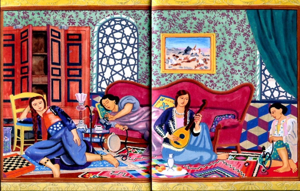 Et puis à chaque fois, juste après cette page titre, un tableau d’inspiration orientaliste viendra envahir tout l’espace de la double-page.