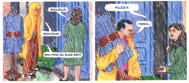 Outre l’identification immédiate des interlocuteurs, l’utilisation de ce procédé va également permettre au lecteur de repérer facilement les moments fantasmés puisque dans ces séquences, quel que soit le personnage qui parle, seule la police du personnage parti dans ses pensées ou ses rêves est utilisée. Ingénieux !