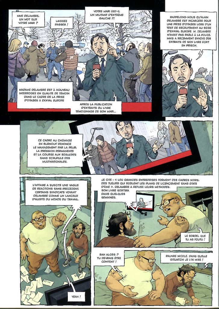 Lors du procès, Exxyal va minimiser l’impact de la prise d’otages et passant sous silence les treize millions détournés et mettre la pression sur ses membres pris en otage en leur dictant leur témoignage afin de dissimuler l’existence d’une caisse noire … Si la série met bien en évidence les dérives du management et le cynisme des dirigeants de ces grandes multinationales, elle n’en montre pas moins l’impact délétère sur ceux qui en sont le jouet. En effet, si au départ Delambre est une victime du système, ne devient-il pas par son côté manipulateur et jusqu’au-boutiste un rouage de ce système où tous les coups sont permis au nom de la sacro-sainte réussite matérielle?