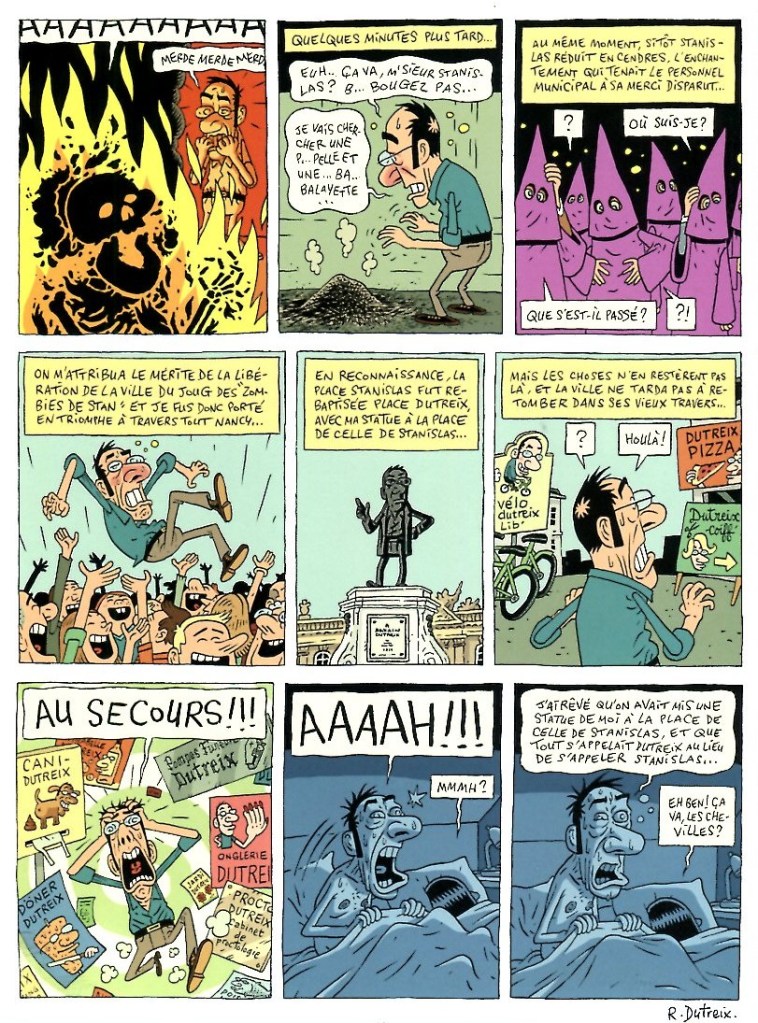 Bonjour Gérard, pardon, Romain Dutreix. Je suis ravie de vous rencontrer dans ce lieu que vous connaissez bien, la librairie nancéienne La Parenthèse à l’occasion de votre dernier album qui vient de paraître chez Dargaud « Mamie n’a plus toute sa tête ». Et quand Mamie perd la tête, elle la fait perdre aussi à ses visiteurs et ce littéralement. Alors Romain que se passe-t-il avec votre mamie ? Et comment ce récit est-il né dans votre esprit ?