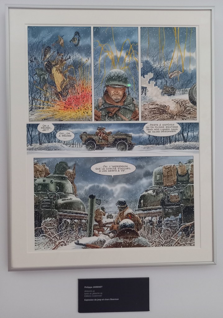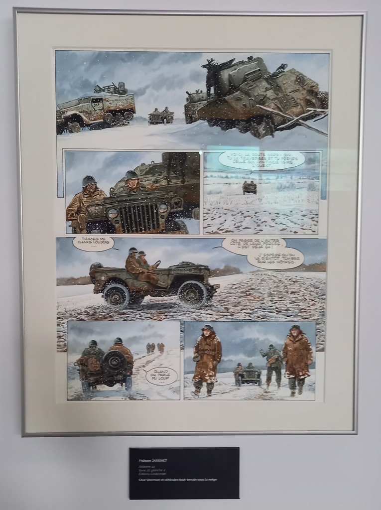 Philippe Jarbinet vient d’un village qui avait été repris par les Américains. Quand il a commencé dans la bd, sa famille ayant été fortement impactée par la bataille des Ardennes, il a dessiné la bataille des Ardennes. Son grand intérêt pour les véhicules et les uniformes l’a amené à axer au départ son travail sur les Américains.