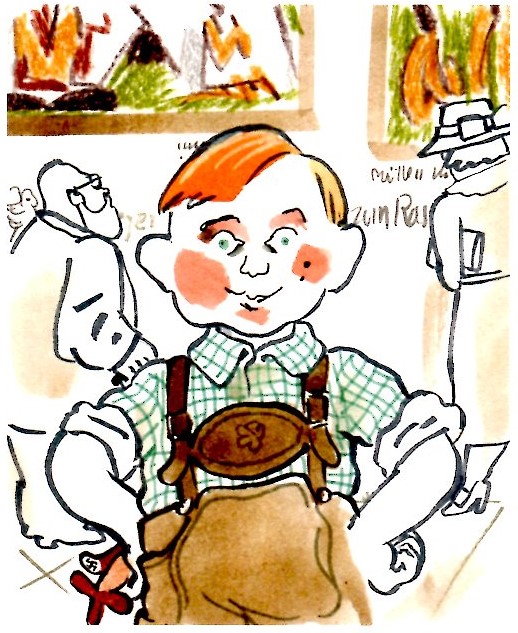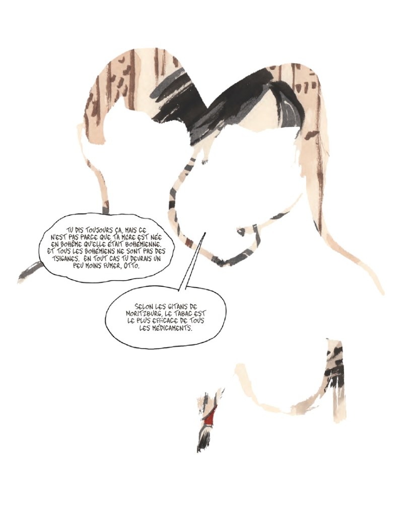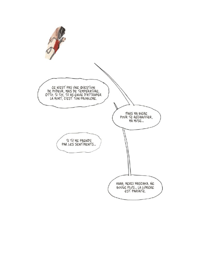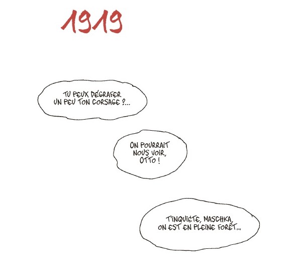 Souvent une touche de rouge – le pinceau d’Otto, le ruban du canotier de Maschka, un brassard nazi … – viendra animer la planche et guider le regard du lecteur.