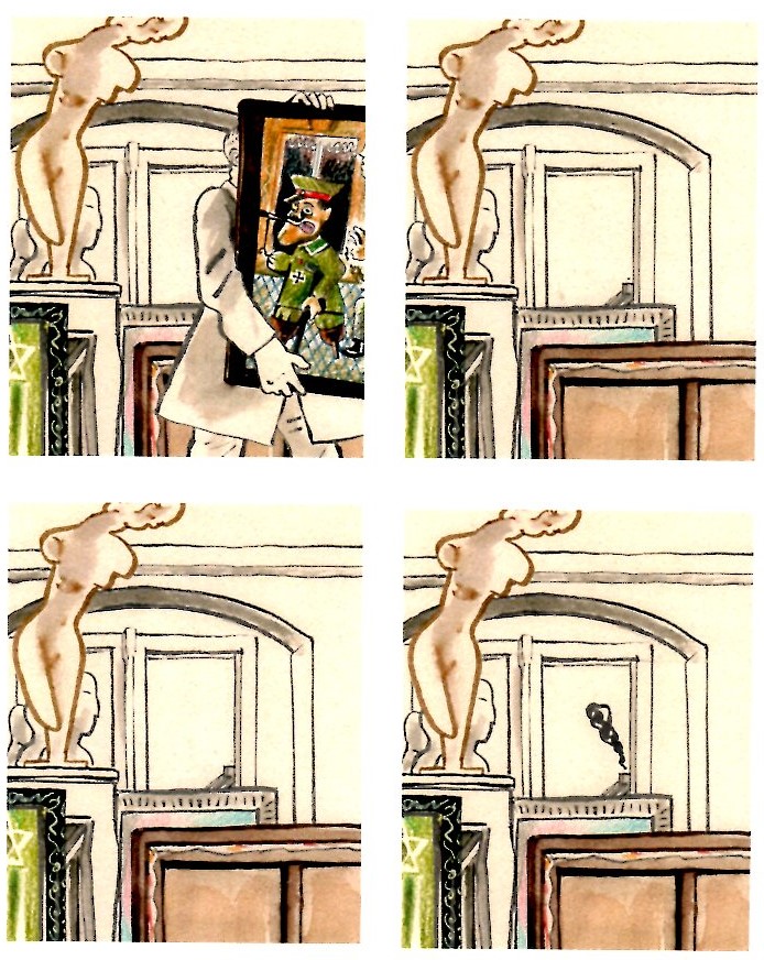 Tout comme la scène glaçante des tableaux transportés en train qui préfigure d’autres transports, mais pas de tableaux cette fois et entre en résonance avec l’œuvre d’Art Spiegelmann.
