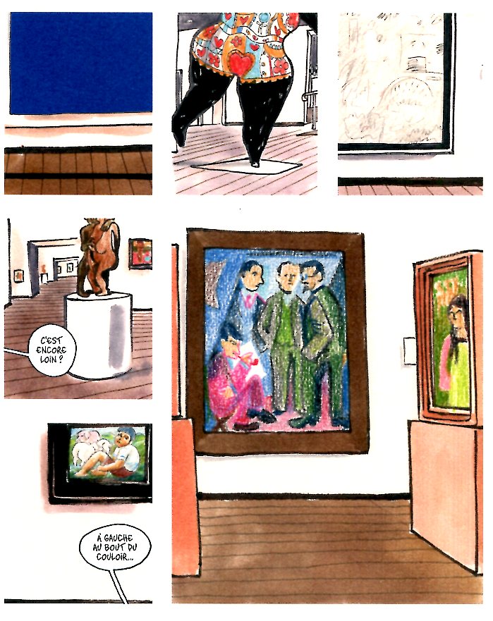 Quant au tableau, on ne le verra qu’à la fin de l’album, et encore, ce n’est pas l’œuvre originale mais une reproduction signée Luz effectuée lorsqu’il le découvrira pour la première fois au musée Ludwig. Jusque là, nous n’avons pu que l’imaginer …