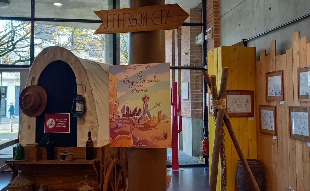 Une expo sympa pour petits et grands à découvrir jusqu’au 11 décembre dans l’espace jeunesse de la bibliothèque Abbé-Grégoire de Blois. Co-produite par bd BOUM, Agglopolys et la Ligue de l’enseignement 41, elle met à l’honneur la brillante et subtile adaptation du roman de Kathleen Karr La longue marche des dindes par Léonie Bischoff.