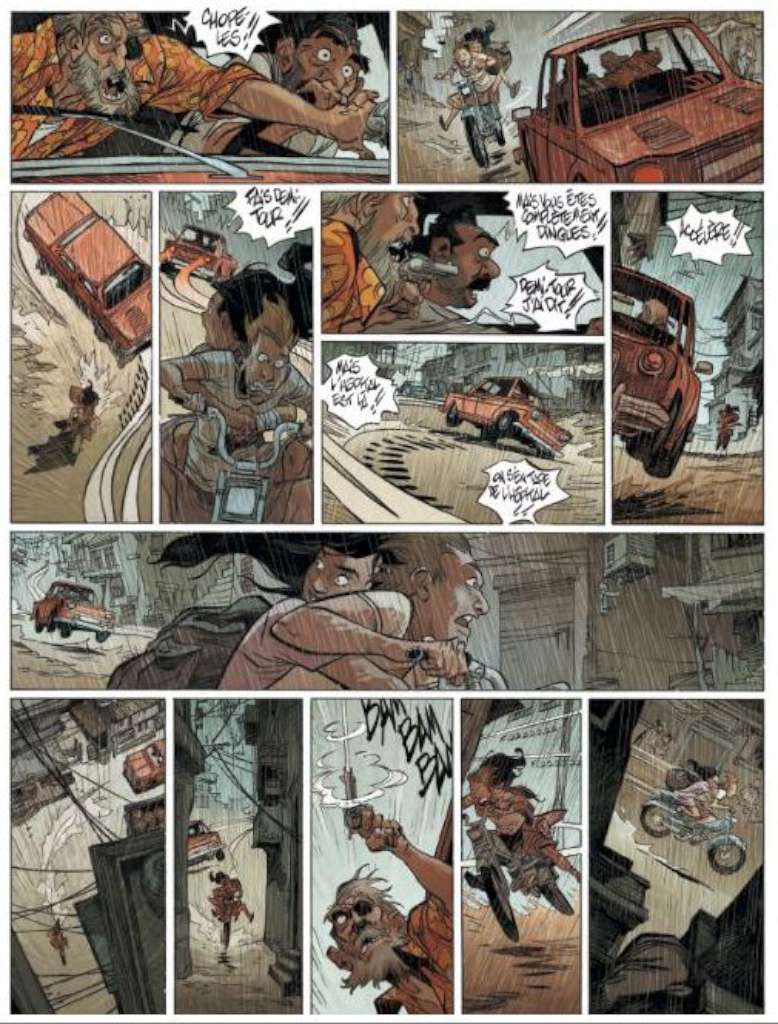 Mais justement est-ce que vous ne mettez pas réellement en scène ? La séquence de la course poursuite présente vraiment des cadrages très cinématographiques même si je n’aime pas trop dire ça parce que pour moi la BD c’est un langage particulier mais là on sent tout de même la patte d’un réalisateur.