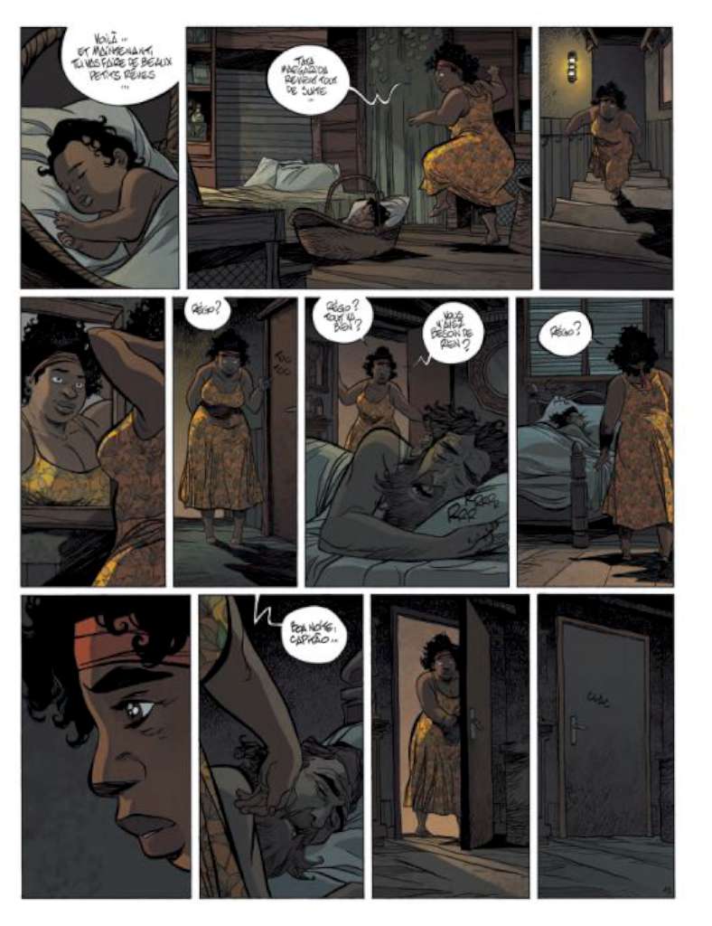 RL : On avait fait une très belle scène qu’on a dû couper. À un moment il devait se retrouver avec Margarida dans la planche « sommeil » qu’on voit au tome 3 … lls étaient ensemble à ce moment-là. Mais on a dû couper la scène parce que, du fait des intrigues, ils n’étaient plus au même endroit à ce moment-là et c’était très compliqué de les réunir… Peut-être dans le tome 4. C’était vraiment une belle scène toute en retenue, en douceur et en délicatesse.