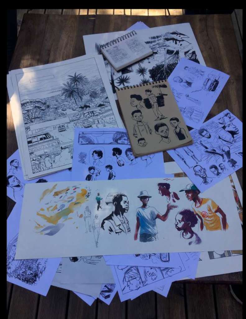 Alors après avoir lu « Jacaranda » et après avoir beaucoup travaillé sur « Petit pays » en bande dessinée, je n’ai plus le souvenir absolu de toutes les séquences ! Si j’ai un regret ce n’est pas sur des séquences que l’on aurait abandonnées mais plutôt sur la place qu’on a donnée aux séquences. J’aurais aimé avoir un peu plus de place sur certaines séquences pour jouer un peu plus avec l’espace et avec le temps et donner un peu plus d’ampleur à certaines images et certains moments un peu suspendus comme ça. On est obligé parfois de traiter de manière synthétique « raccourcie » et c’est ça qui me gêne un peu.